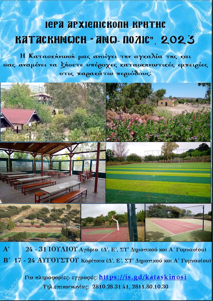 Ἔναρξη ἐγγραφῶν παιδικῆς Κατασκηνώσεως Ἱερᾶς Ἀρχιεπισκοπῆς Κρήτης Καλοκαίρι 2023