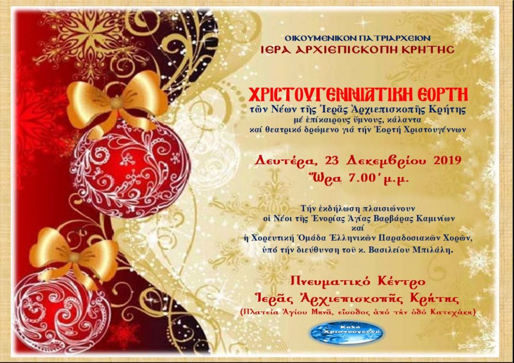 Χριστουγεννιάτικη Εκδήλωση των Νέων της Ι. Αρχιεπισκοπής Κρήτης 2019
